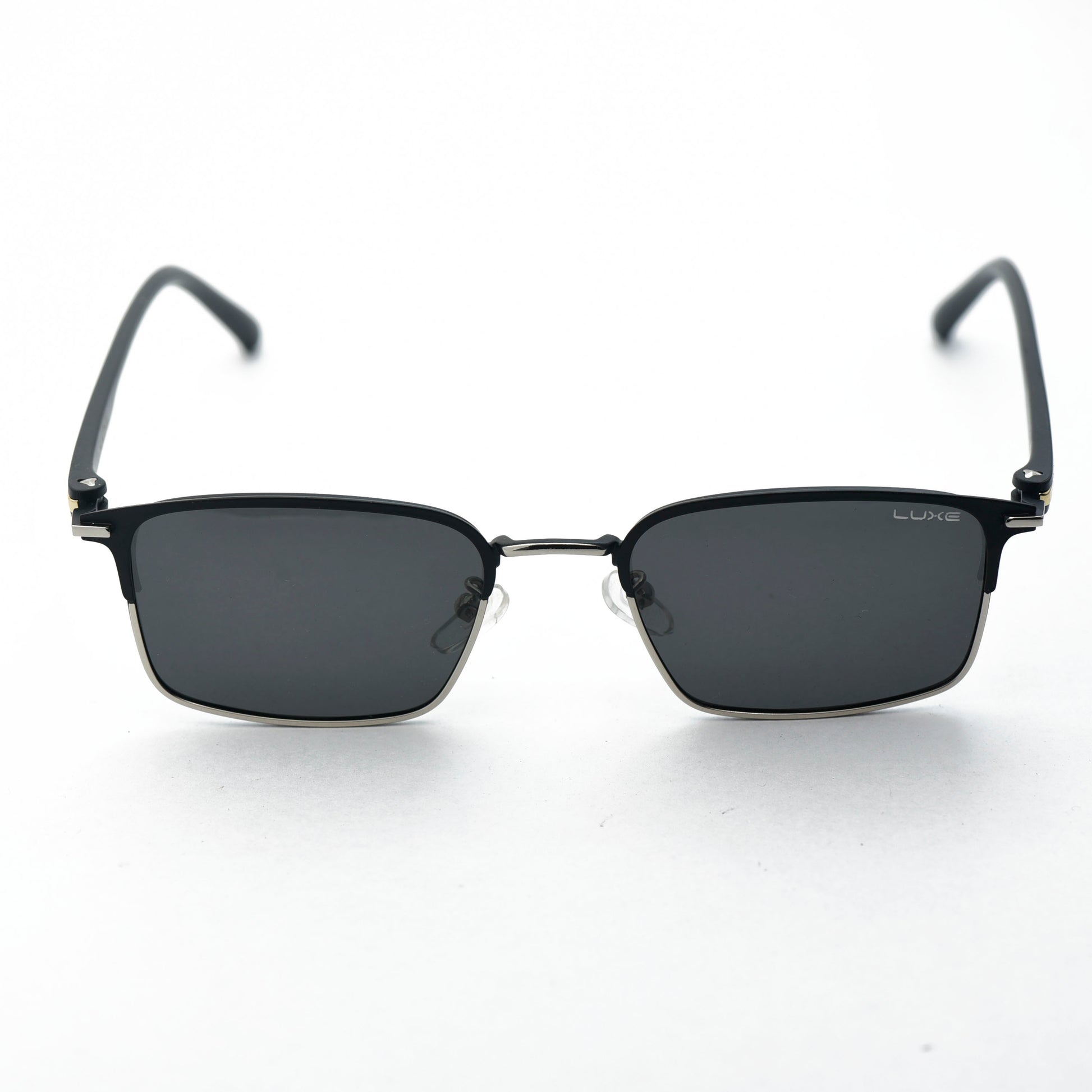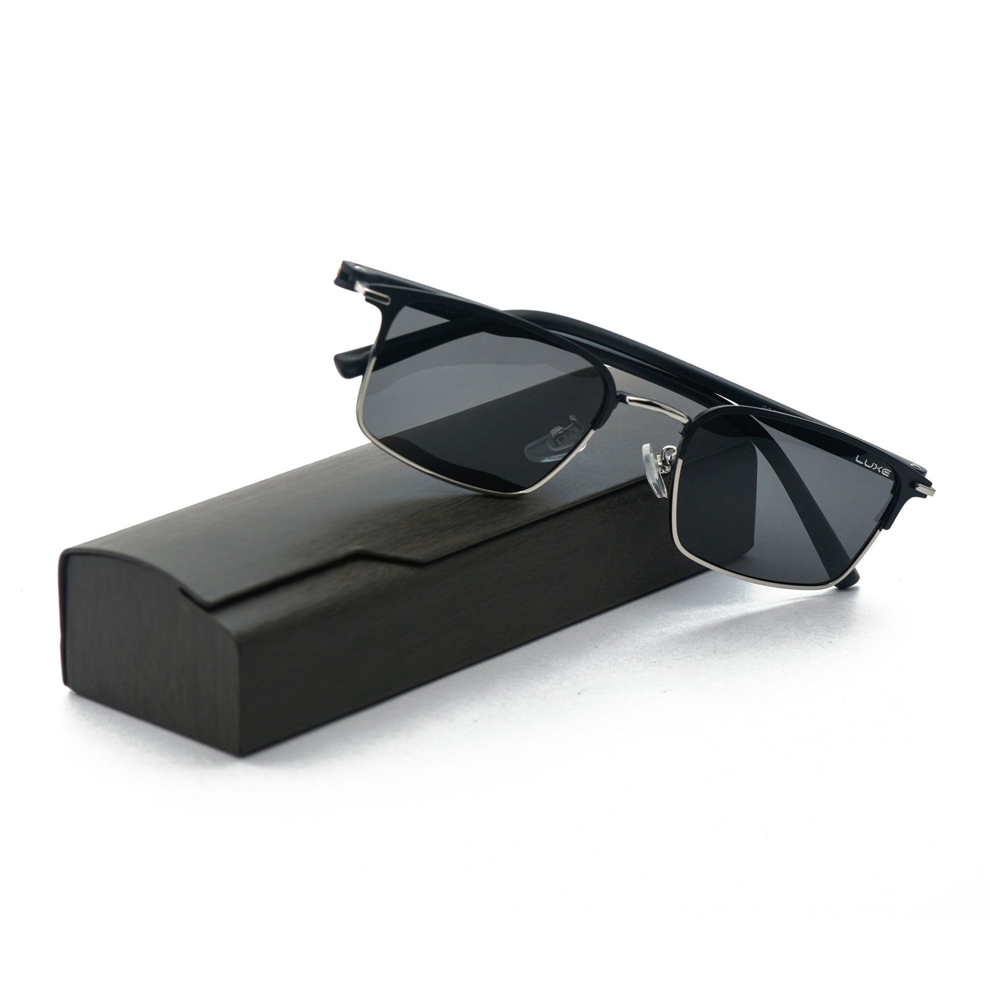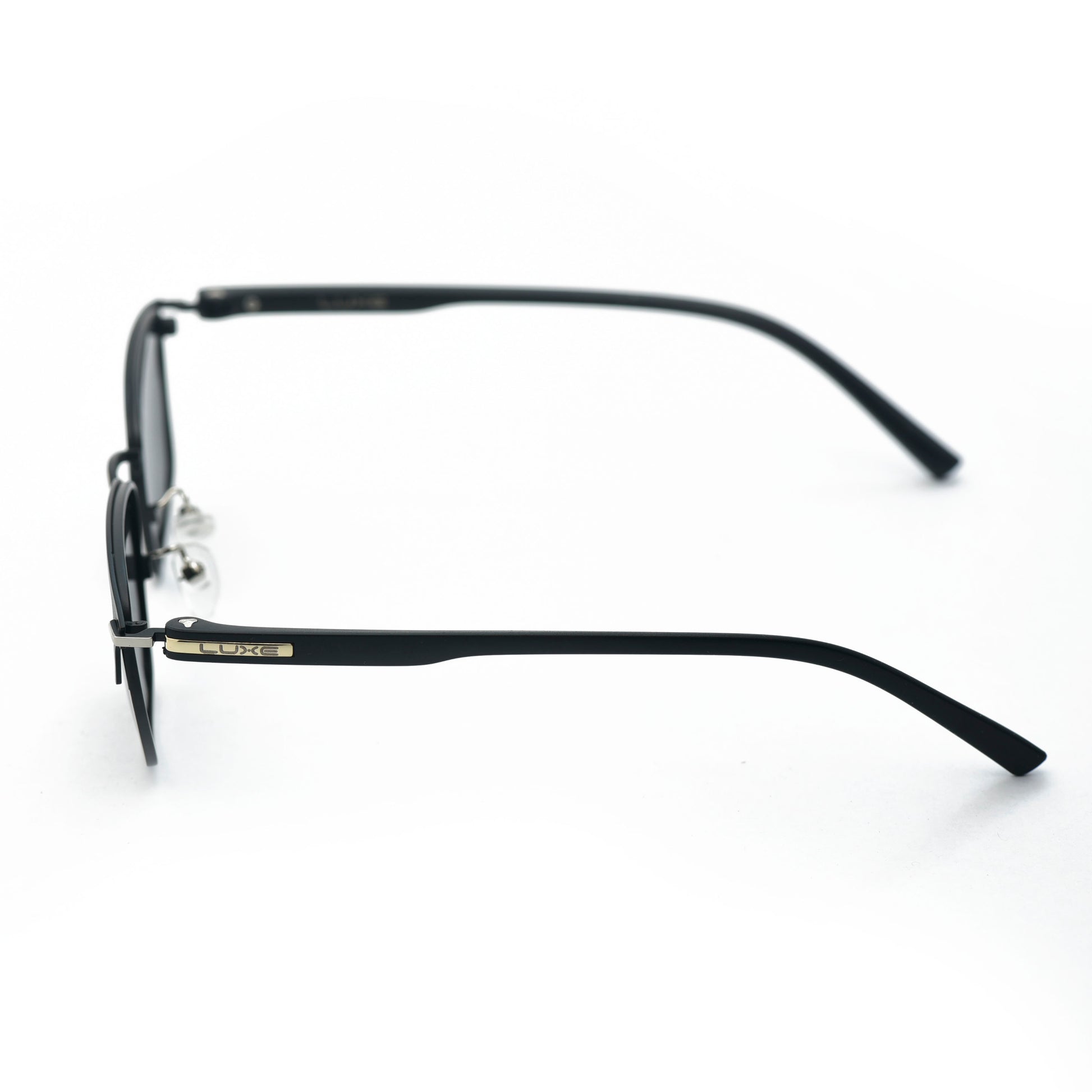 Elevate your everyday look with the signature style of LUXE Clubmaster Sunglasses. Designed for the modern trendsetter, these sunglasses combine vintage charm with contemporary sophistication. The sleek black upper frame contrasts beautifully with the metallic lower rims, offering a bold yet refined appearance.