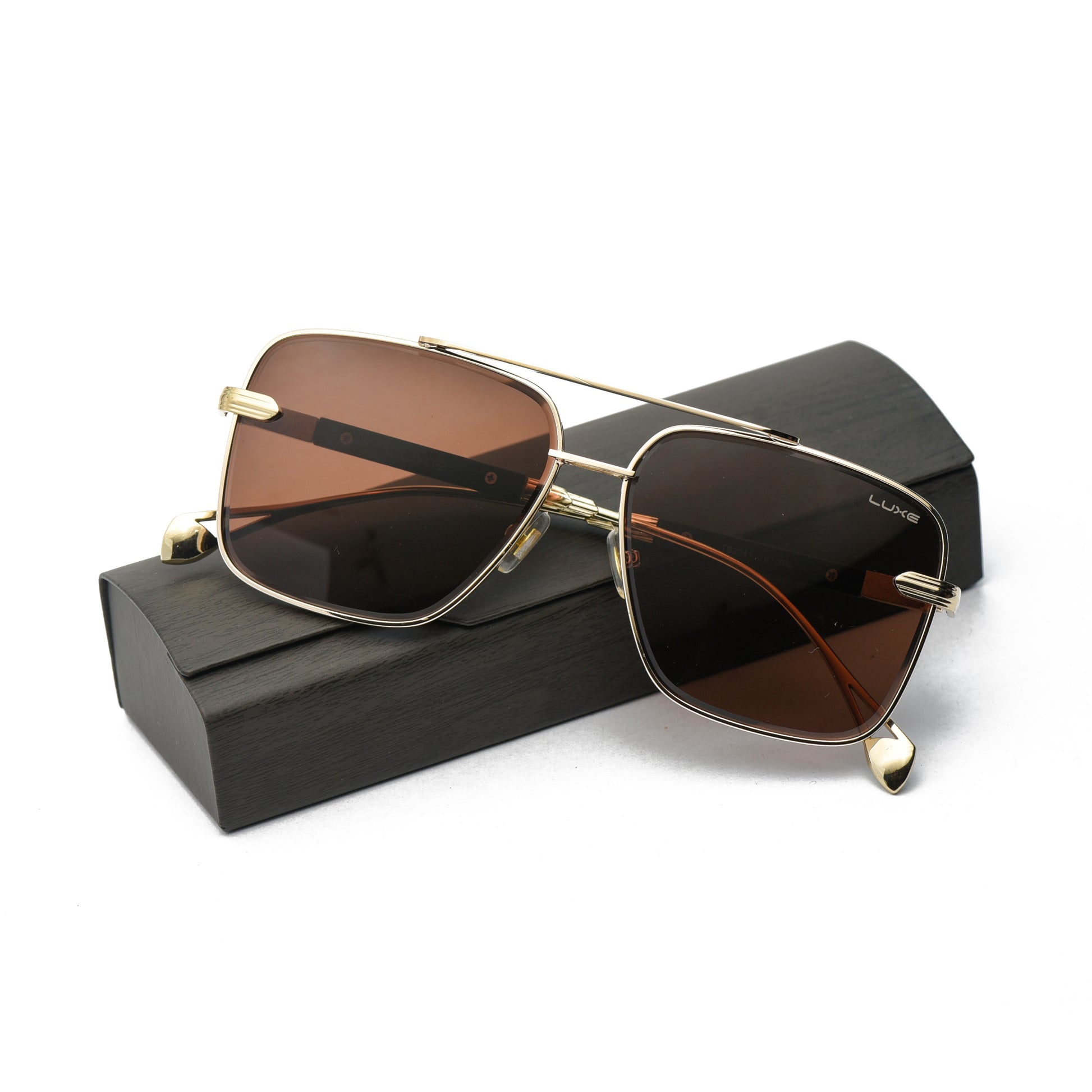 LUXE Gold & Brown Designer Sunglasses – Square Frame Elegance