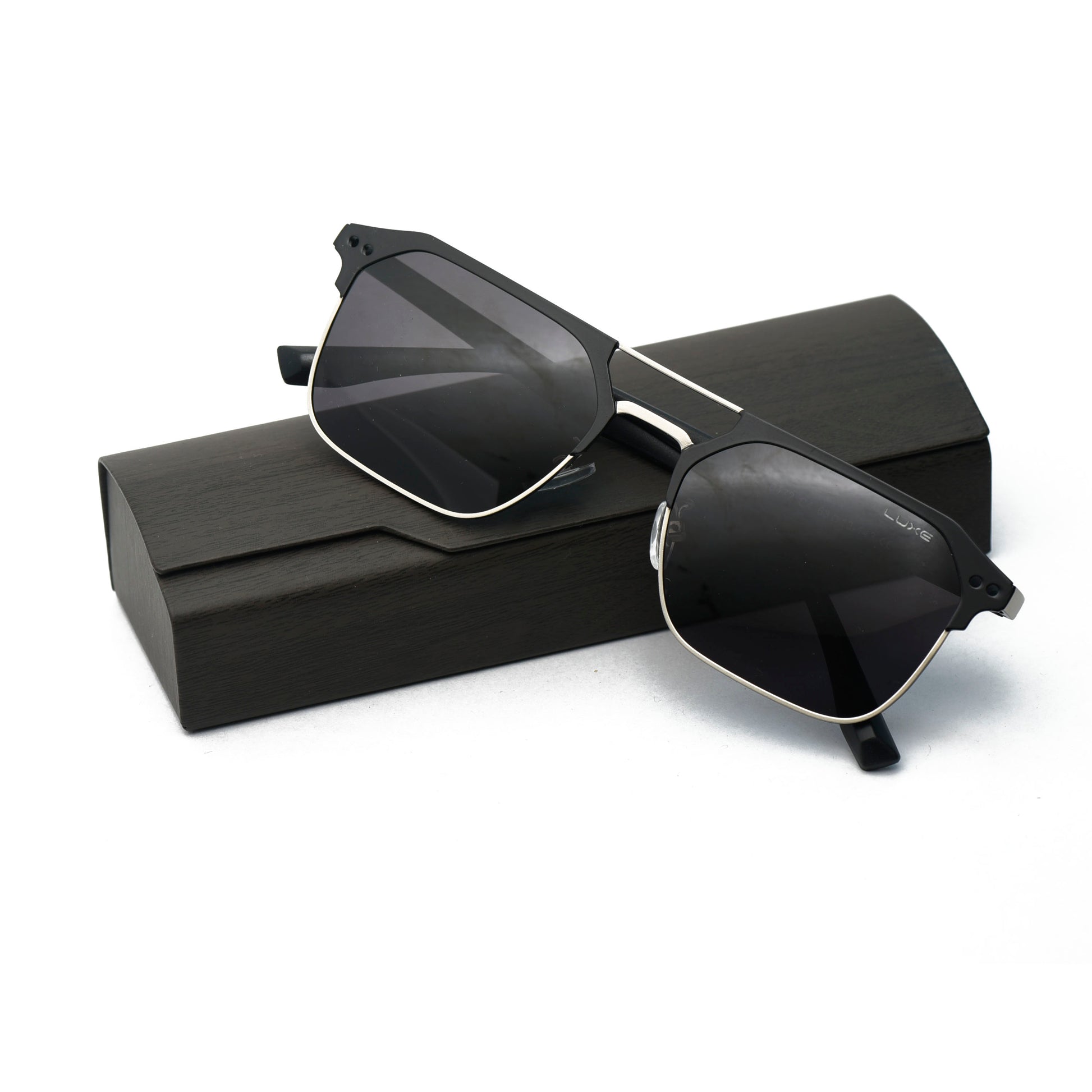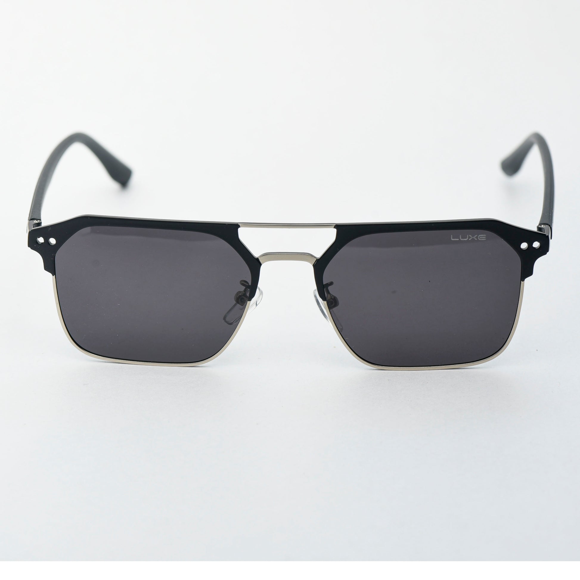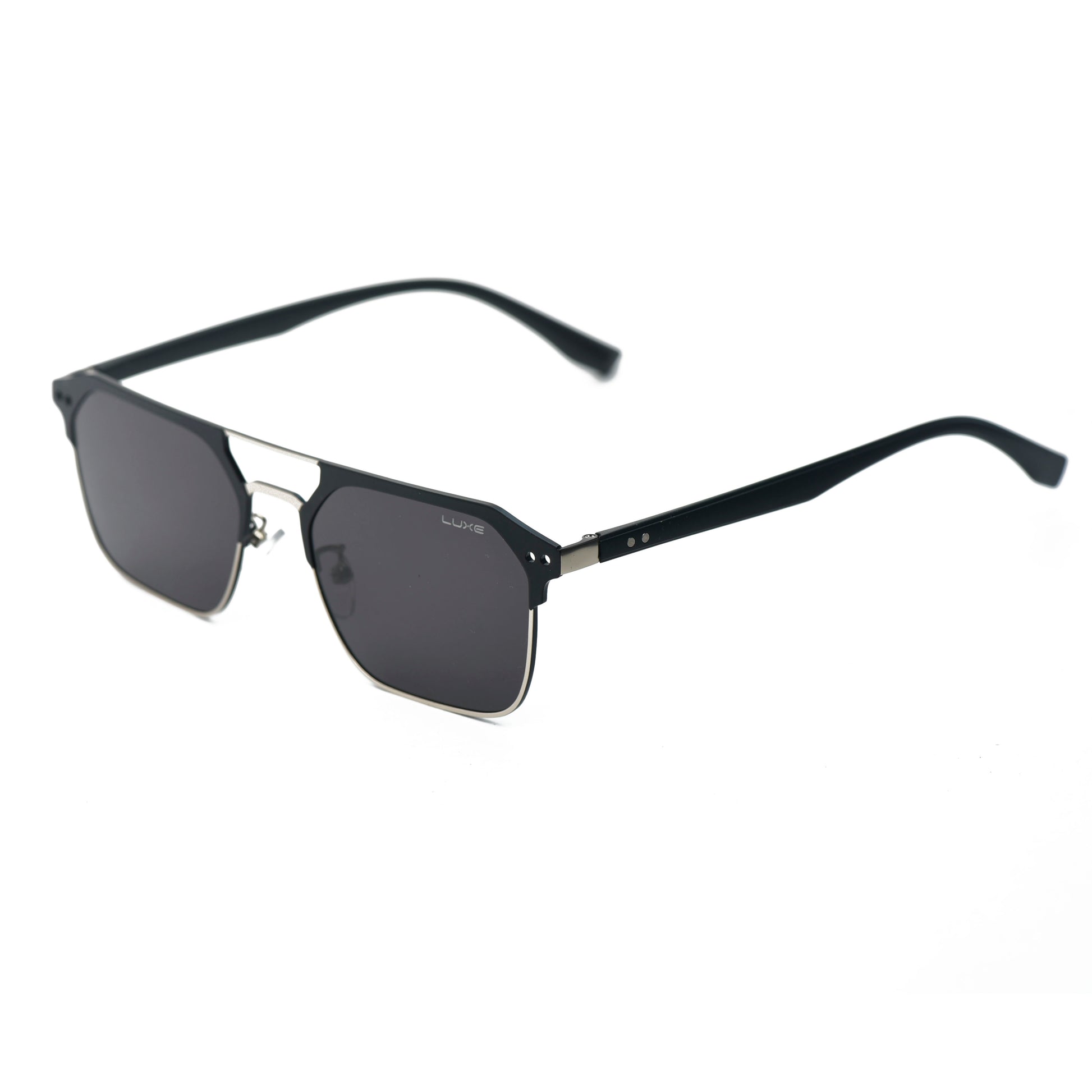 Discover modern minimalism with the LUXE Semi-Rimless Black Sunglasses — where precision design meets timeless class. Featuring a striking matte black upper frame paired with sleek silver accents, these sunglasses boast a bold yet refined look suitable for any occasion.