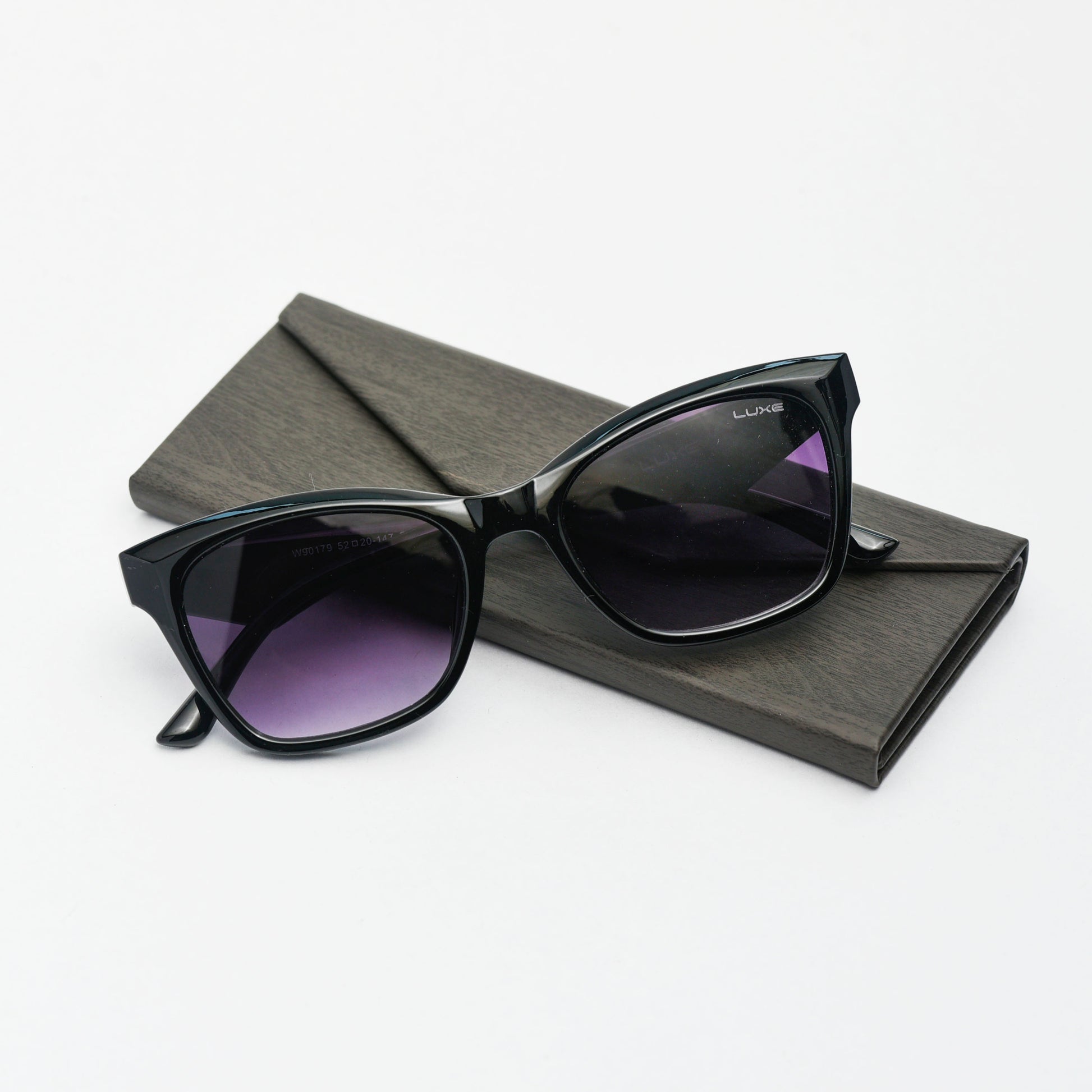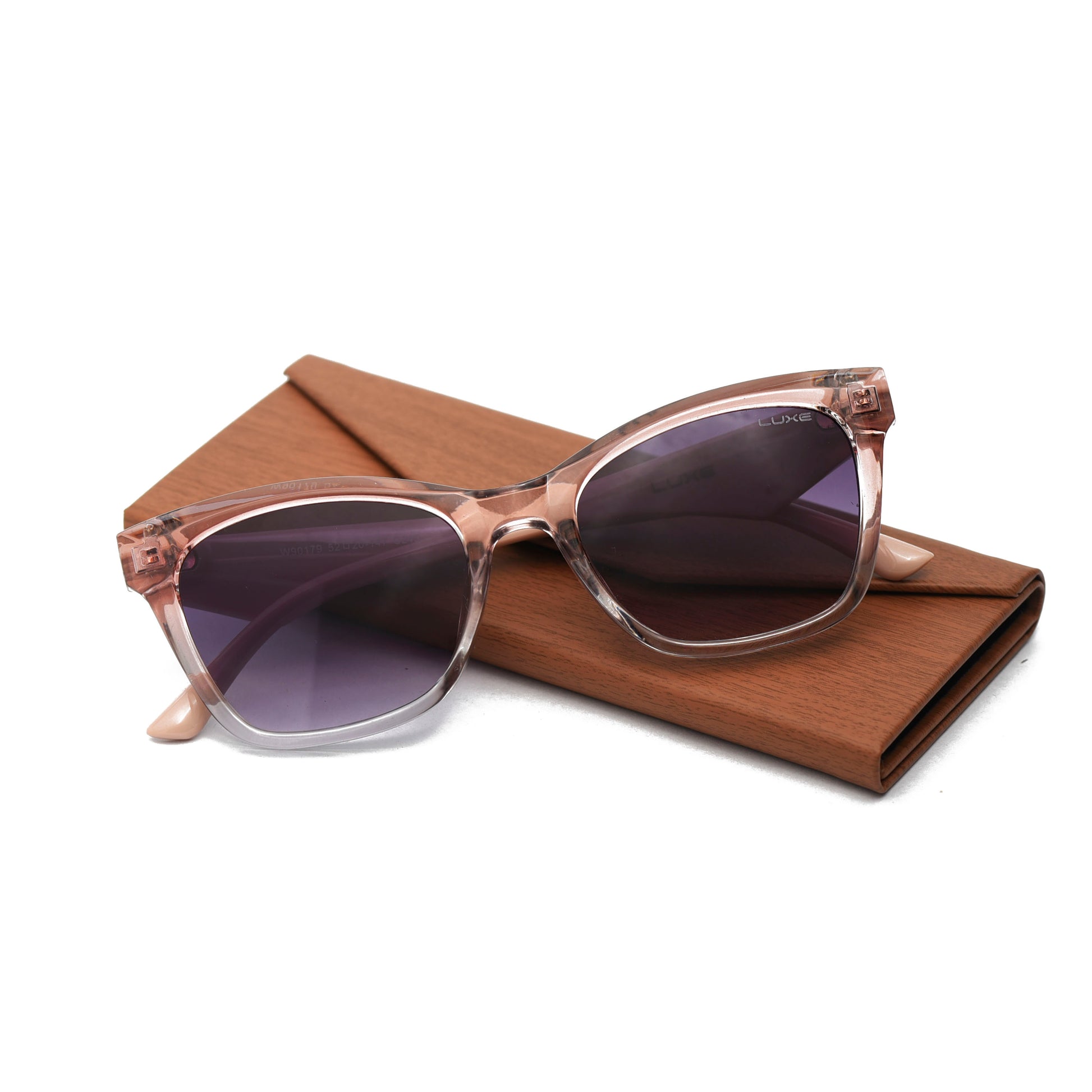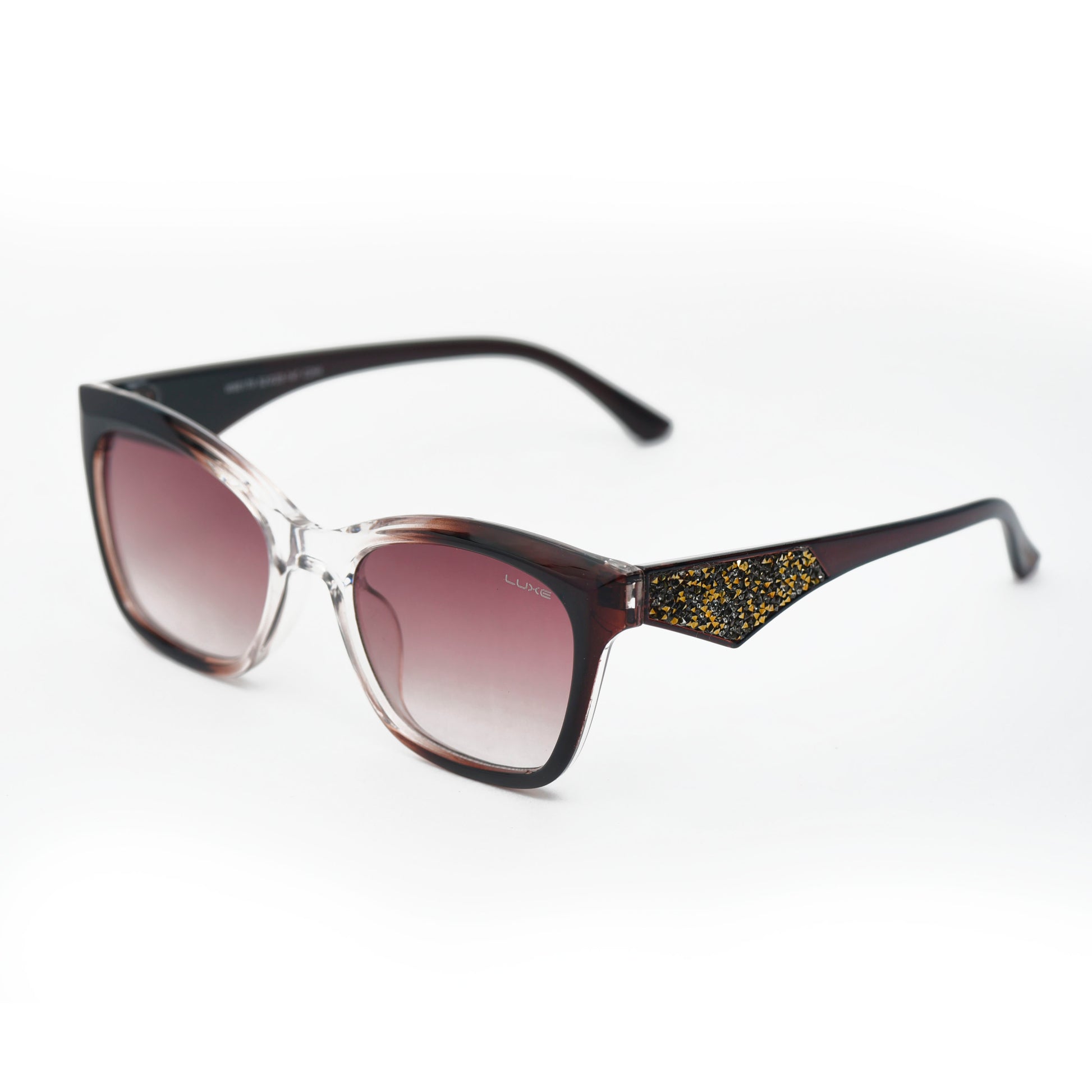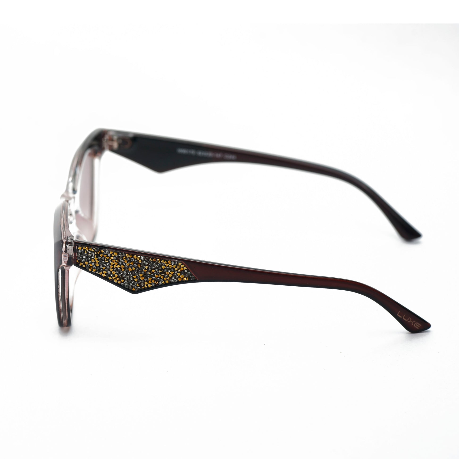 - Subtle Gradient Lenses: Fitted with high-quality lenses in a delicate pinkish-brown gradient, offering clear, comfortable vision and effective sun glare reduction, ensuring a refined look. The discreet "LUXE" mark on the lens is a signature of quality.